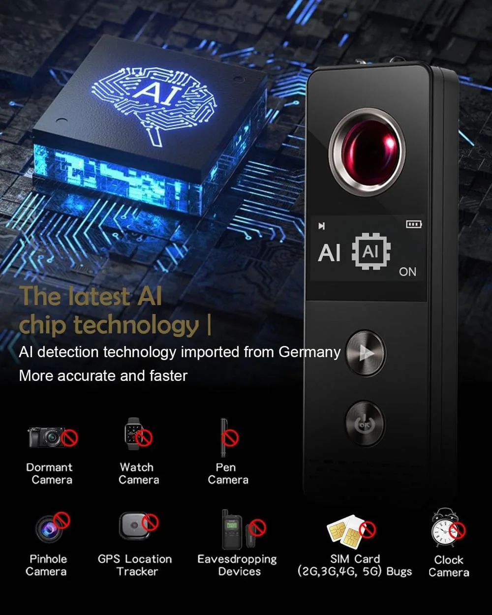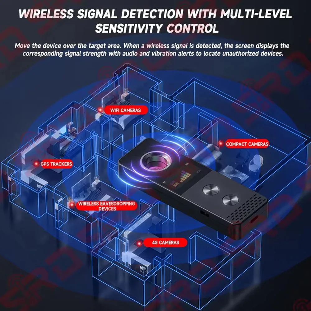 Protect your privacy anywhere with this All-in-One Hidden Device Detector—a compact powerhouse that scans for hidden cameras, GPS trackers, and listening bugs in seconds. Whether you're in hotels, rentals, or offices, it keeps your space secure and your mind at ease.