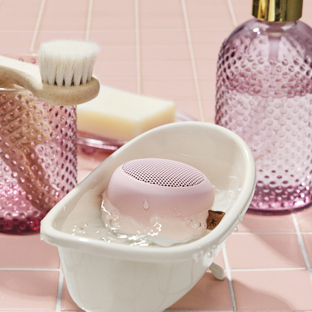 Kreafunk Alight Bluetooth Speaker - Dusty Rose - aLIGHT Charming, Versatile, and Water-Resistant.Meet aLIGHT, the irresistibly cute and clever blend of a lamp and Bluetooth speaker. Whether you're soaking in the tub with mellow tunes and a warm glow or singing your heart out in the shower, aLIGHT brings both ambience and sound to your daily rituals.Designed with convenience in mind, it mounts easily using the included metal plate and adhesive tape. Once attached, the magnetic base makes snapping it on and off a breeze.Built to handle splashes (IPX5 rated), aLIGHT is your go-to for both indoor relaxation and outdoor fun perfect for the bathroom, balcony, backyard, or even a cozy tent.Got a little one who's not fond of the dark? Its soft lighting and soothing audio can help calm even the most restless sleepers.For an even richer sound experience, pair two aLIGHT units wirelessly with Stereo Play mode.